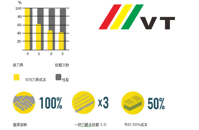 通过在我们的*具设计中增加一项允许在未来修复中精确复制的工艺,我们能够保证修复*具的性能。修复过程将复制原装*具的槽型和涂层。修复*具的性能测试流程与新*具相同。