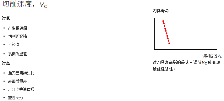 设置过低的切削速度将导致*具寿命不足。请务必使用尽可能高的切削速度vc m/min (英尺/分钟)
